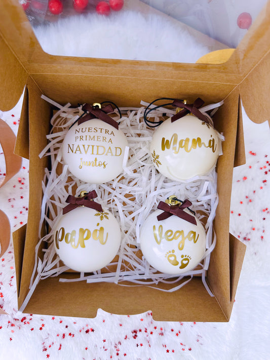 Pack 4 bolas "Nuestra Primera Navidad Juntos"