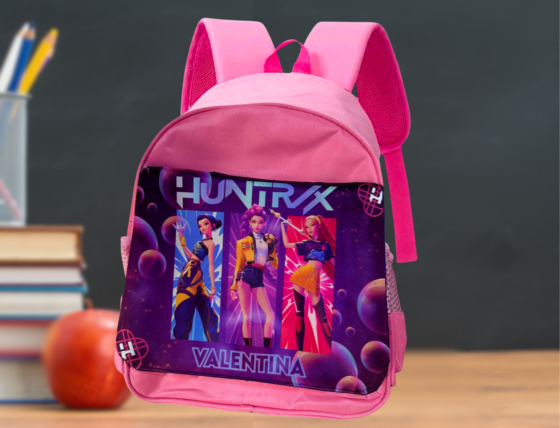 Si tu hija es fan de Huntrix, esta mochila personalizada será su compañera perfecta para el cole, la guardería o sus actividades favoritas.