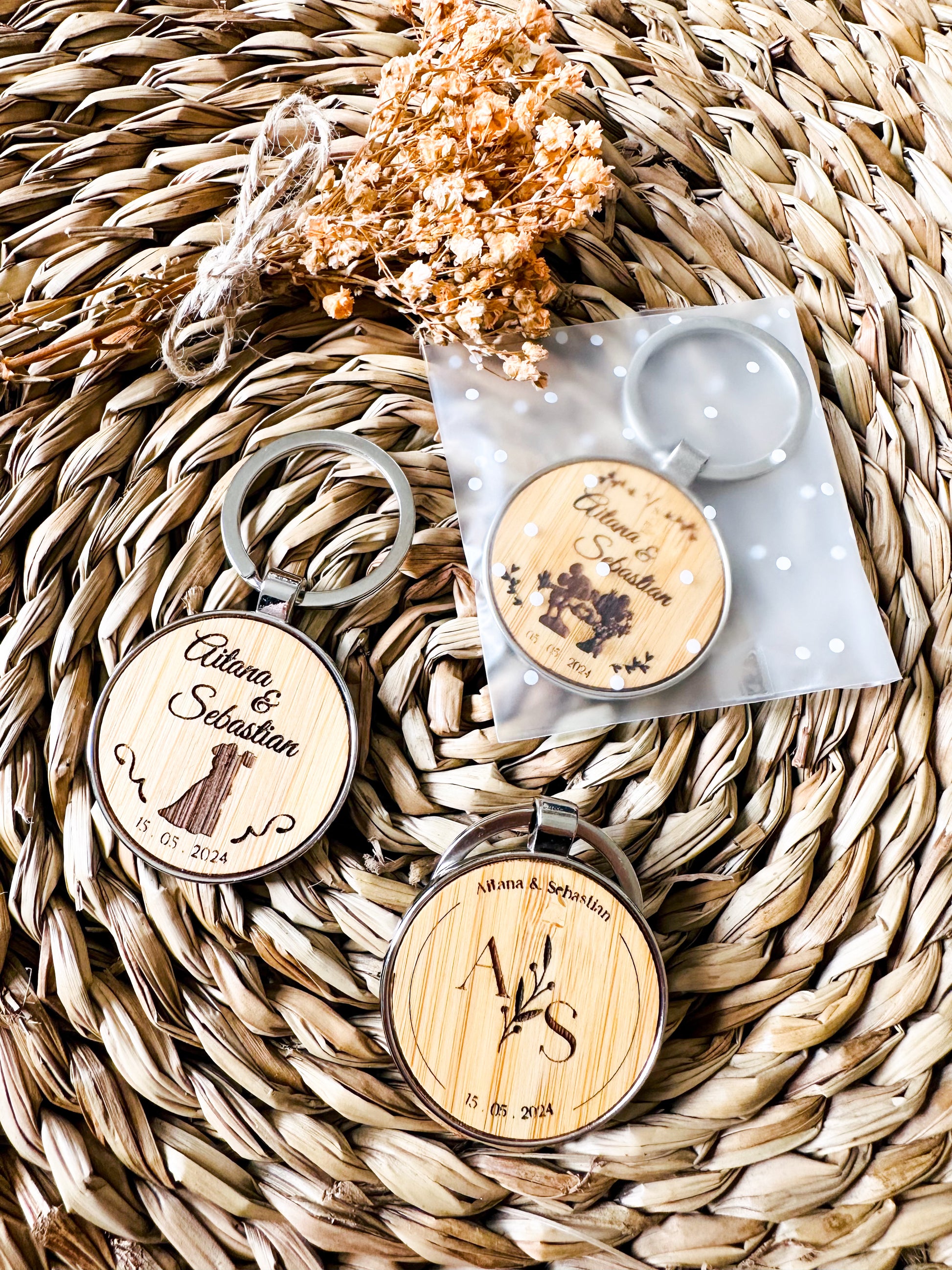 Si estás buscando un detalle útil, bonito y muy especial que seguro que todos los invitados se llevarán a casa y lucirán en su día a día te presentamos nuestros llaveros de madera y metal personalizados con un toque muy elegante