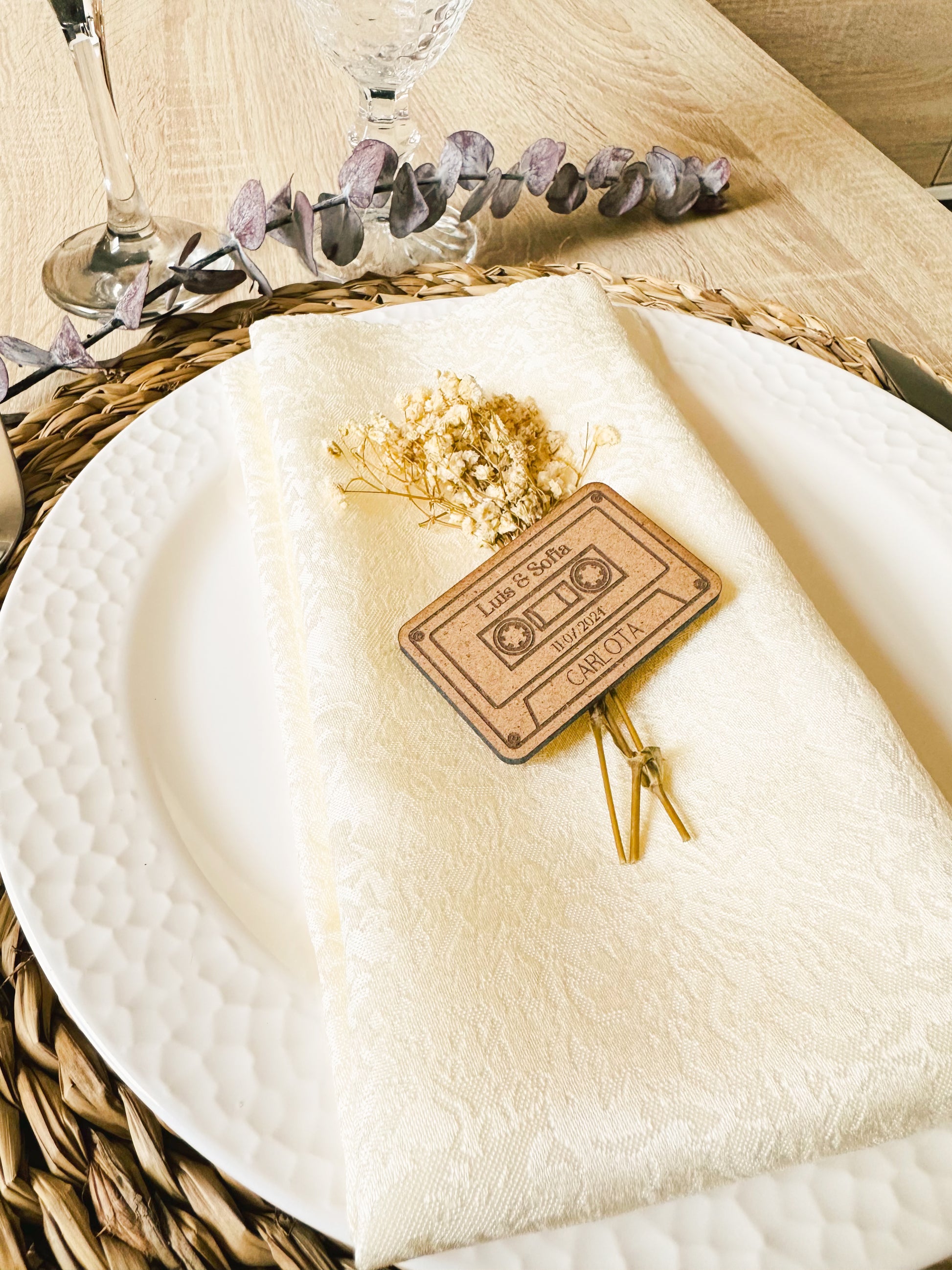 Si estás buscando un detalle útil, bonito y muy especial que seguro que todos los invitados se llevarán a casa y lucirán en su día a día en la nevera, os presentamos nuestros marcasitios con el nombre de cada invitado con imán
