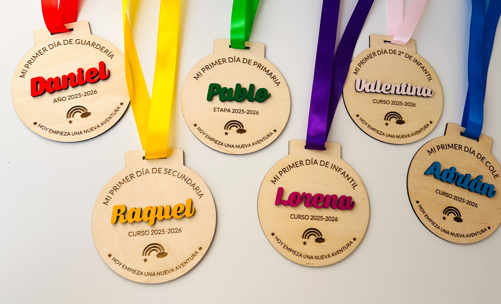 Cada medalla está fabricada en madera natural, con grabado láser de alta precisión y el nombre en relieve pintado a mano. Incluye la frase emocional “Hoy empieza una nueva aventura” y el año escolar grabado para que nunca olvides este gran momento.