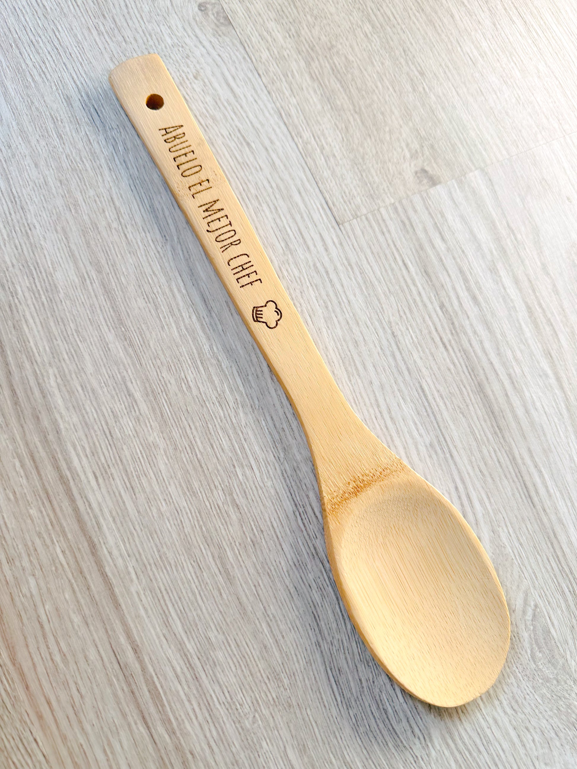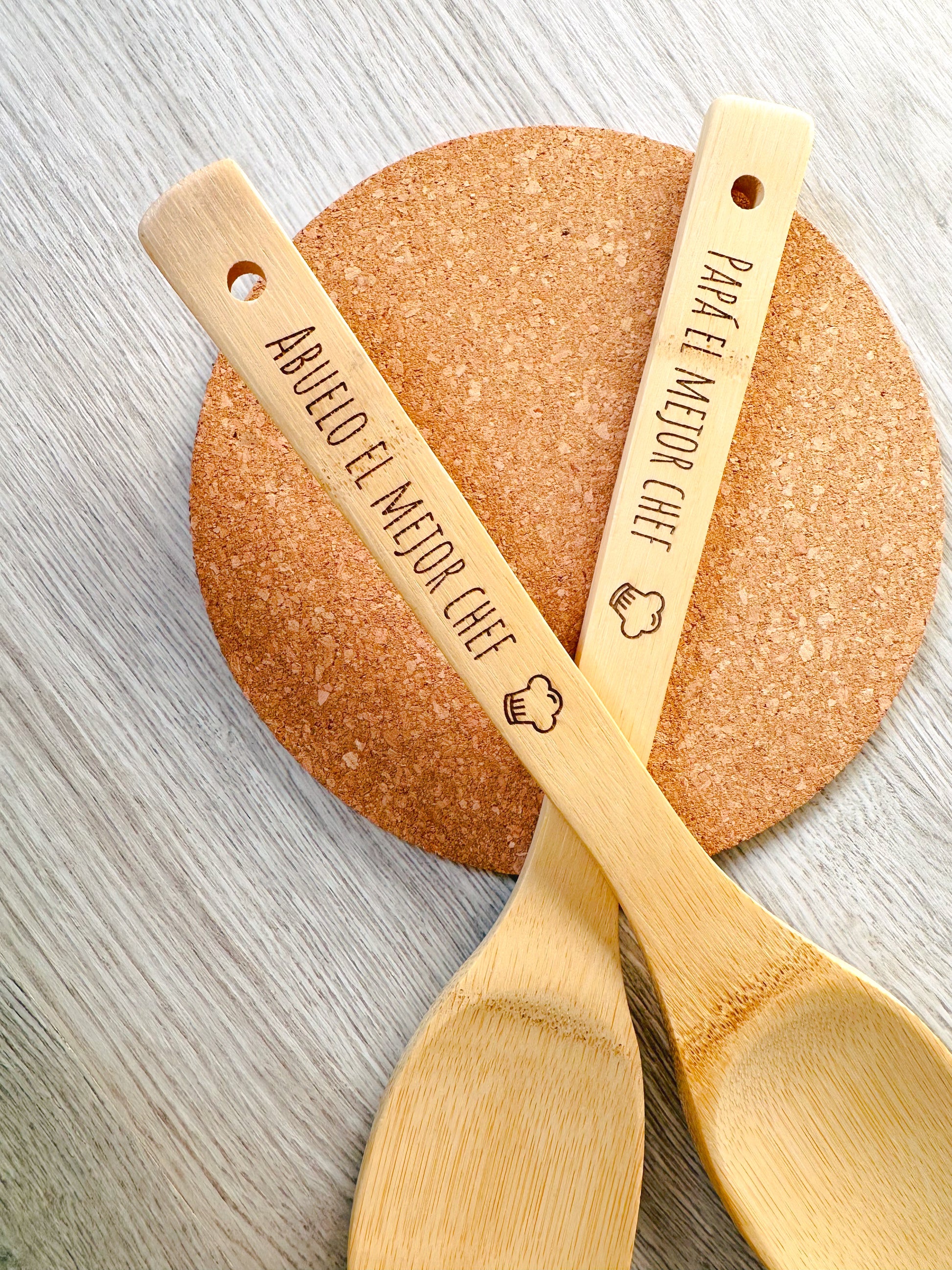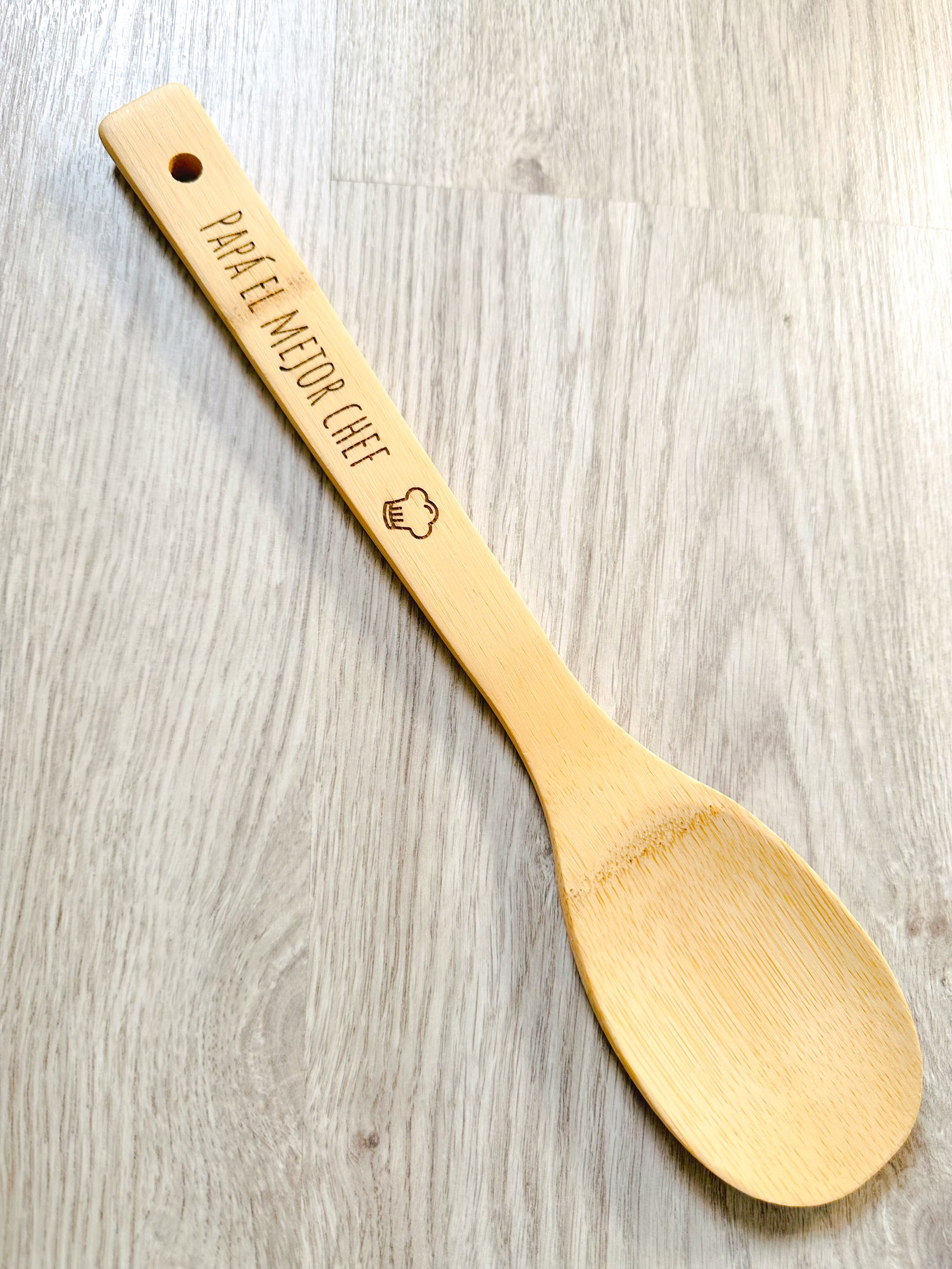 - Cuchara de madera grabada con la frase de "Papá/Abuelo el mejor chef".