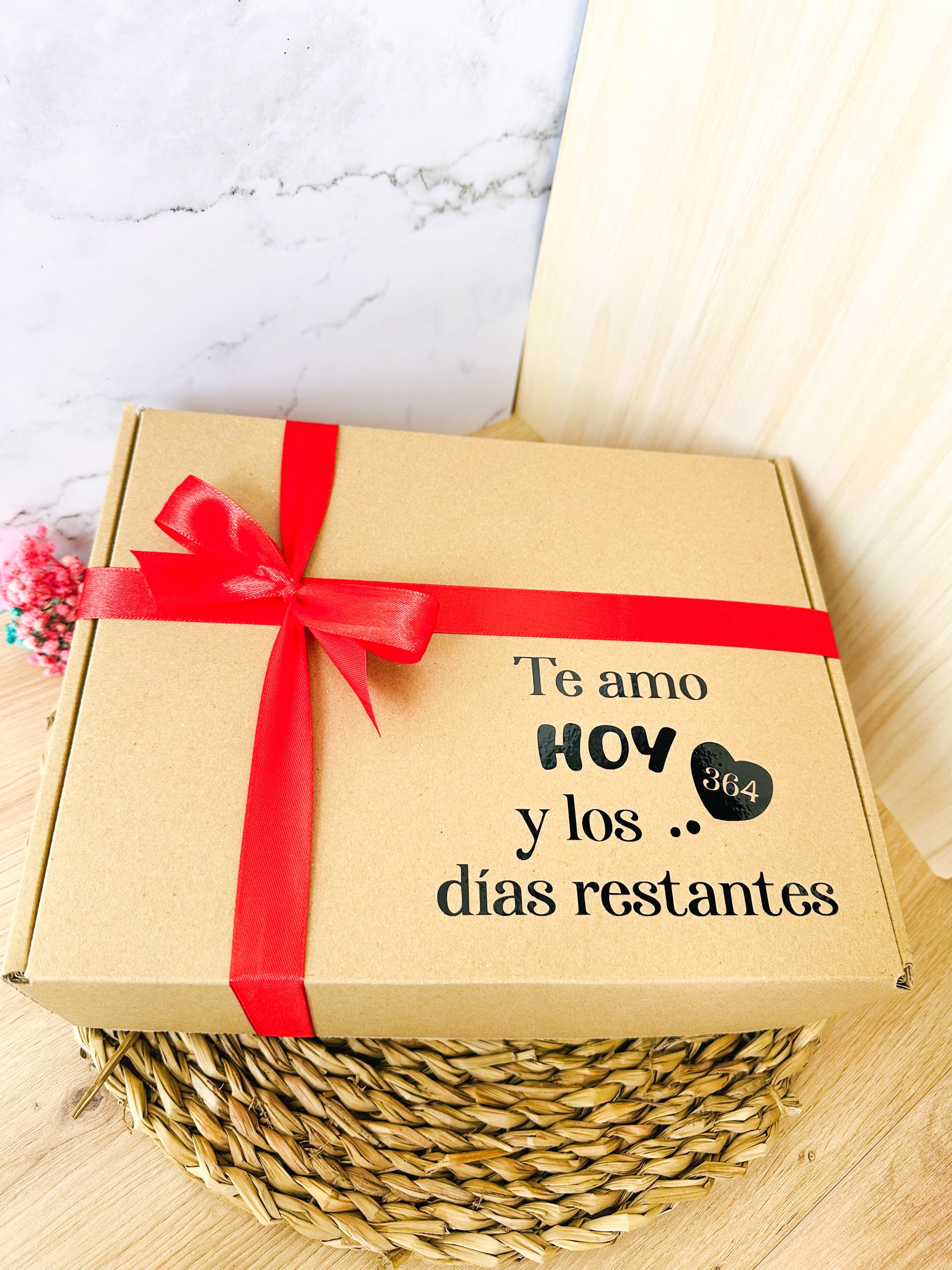 - Empaquetado listo para regalar con la frase “Te amo hoy y los 364 días restantes”. (La caja lleva dentro de plástico de burbujas para proteger los productos delicados)
