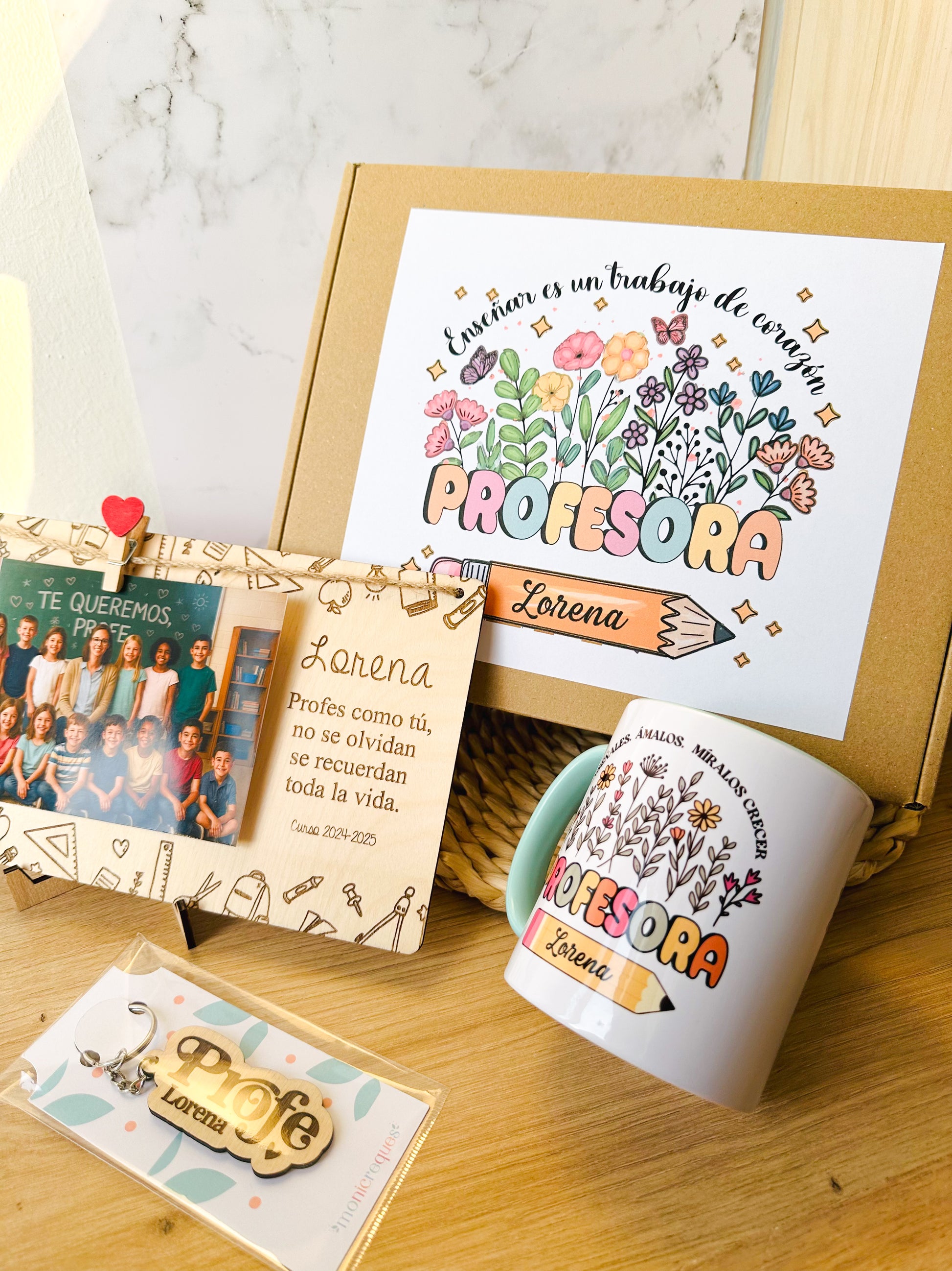 ¿Buscas un detalle especial para esa profe que ha dejado huella? Este pack está pensado para emocionar y agradecer con el corazón. ¡Totalmente personalizado y listo para regalar! Adaptamos el diseño tanto para Profesora como para Profesor