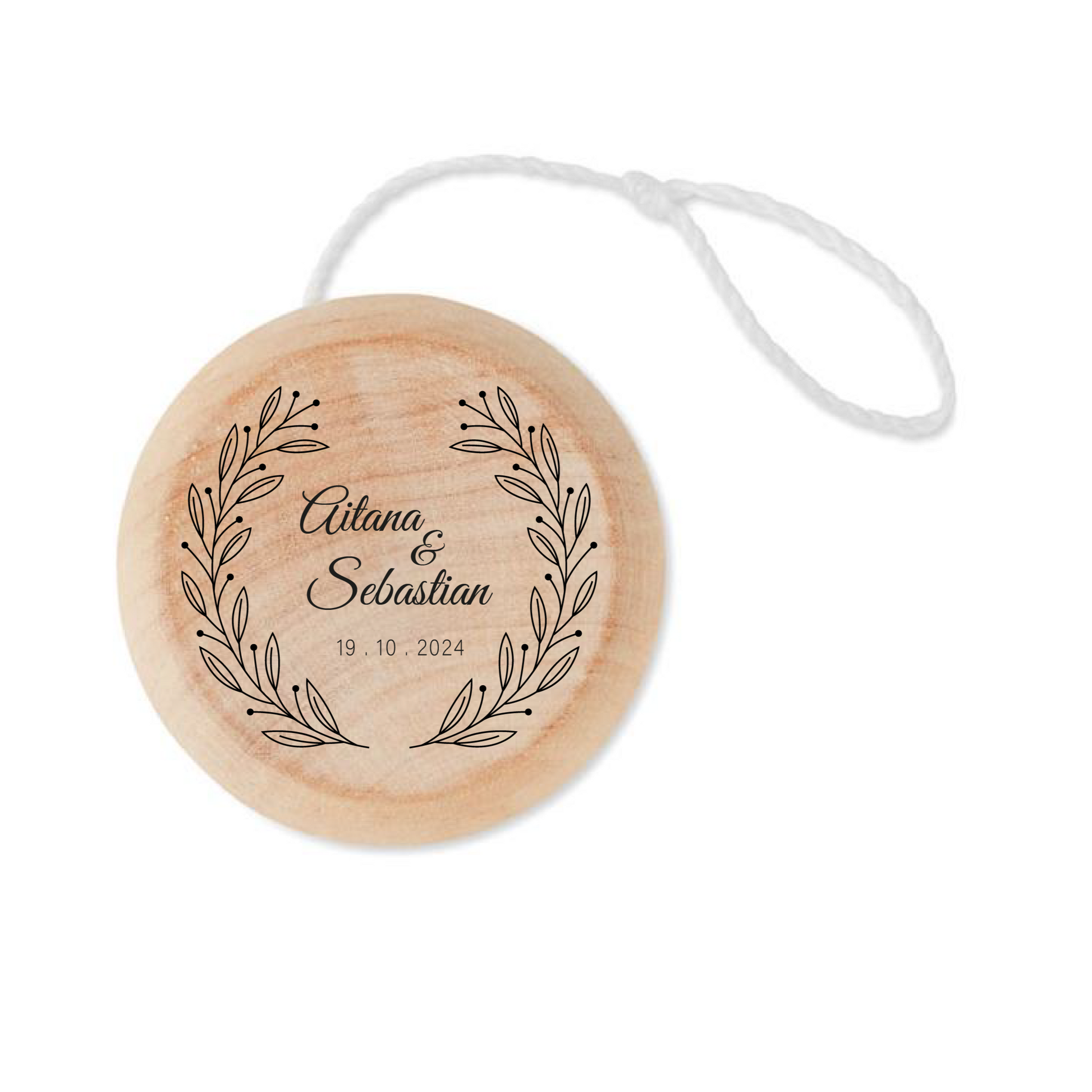 Nuestros Yoyos de madera natural personalizados son el detalle perfecto para regalar a los invitados más pequeños