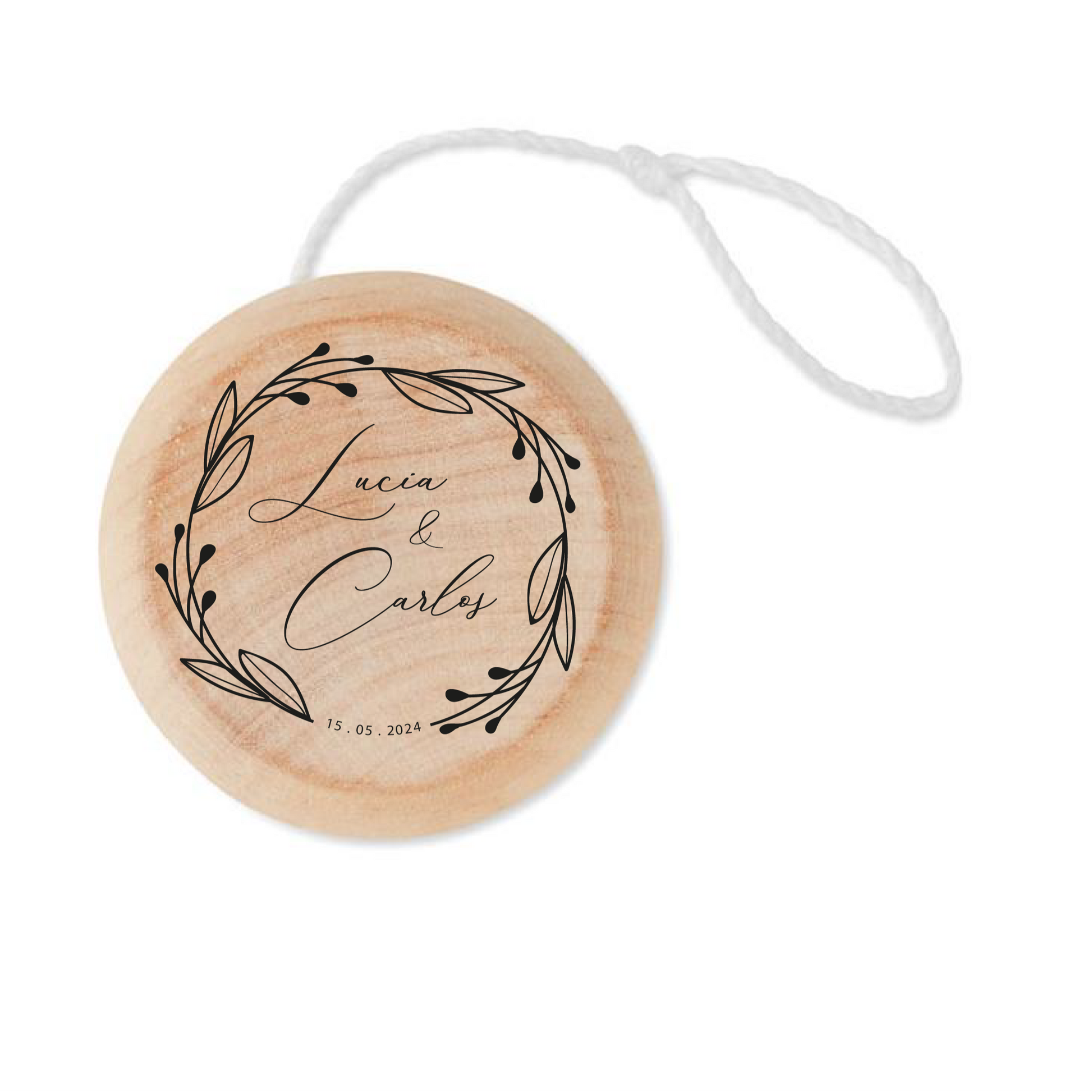 Nuestros Yoyos de madera natural personalizados son el detalle perfecto para regalar a los invitados más pequeños
