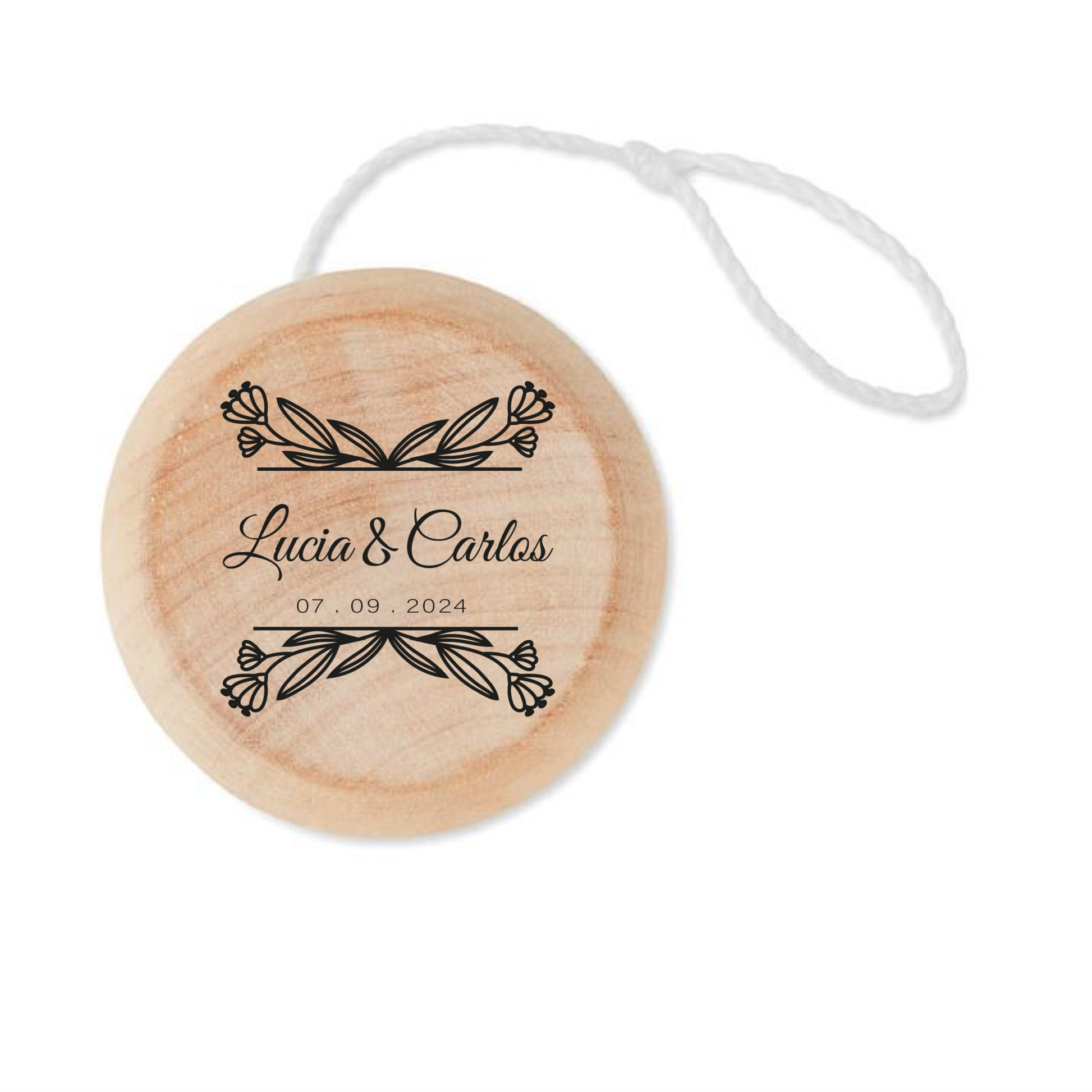 Nuestros Yoyos de madera natural personalizados son el detalle perfecto para regalar a los invitados más pequeños