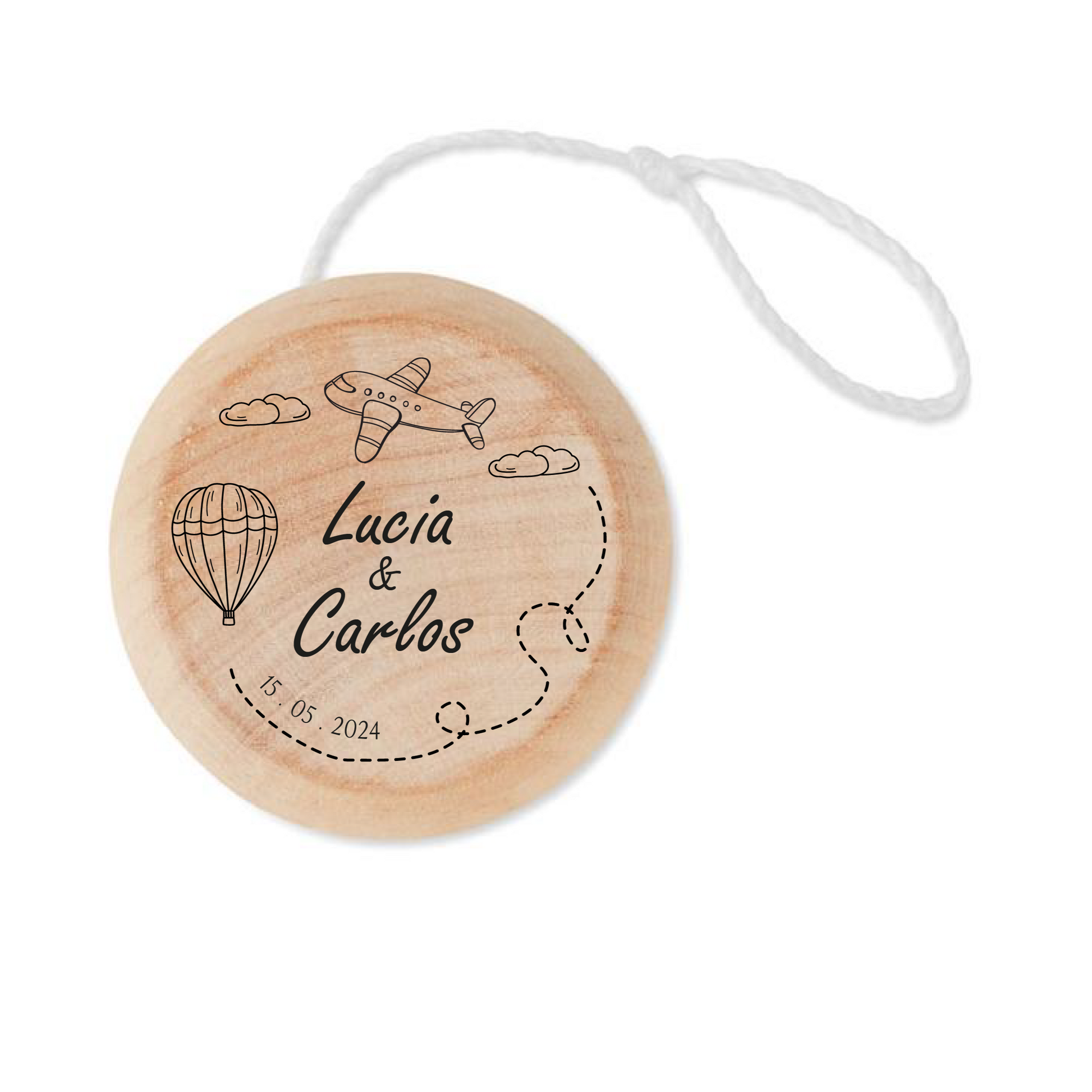Nuestros Yoyos de madera natural personalizados son el detalle perfecto para regalar a los invitados más pequeños